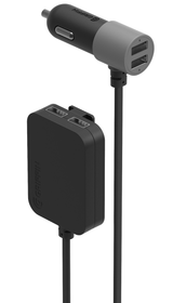 - Two USB-A ports are built-in, and two are connected with a 6-foot cable for the back seat.