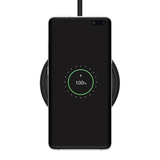 The sleek design of the 10W Wireless Charging Pad takes up practically no space while charging any Qi-enabled device. You'll always be aware of your device's charging status with the built-in indicator light, and your device will stay in place and free from scratches thanks to the rubberized top surface.
