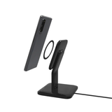 The magnetic array on the snap+ wireless charging stand works with MagSafe compatible devices. Attach the included magnetic ring to any smartphone to make it compatible with the snap+ wireless charging stand. The magnetic array ensures accurate placement so charging begins on contact. The snap+ wireless charging stand can charge through cases up to 3mm thick. Engineered to deliver up to 15W of power. Includes a 20W wall adapter.