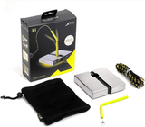 Visually, the B1 Mouse Bungee boasts an appealing design. Its sleek silver-colored, brushed metal surface is enhanced by striking black accents, while the bungee's arm stands out in a vibrant yellow hue.