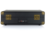 • Timeless retro briefcase-style turntable bound in a leatherette material, lightweight and easily transported.